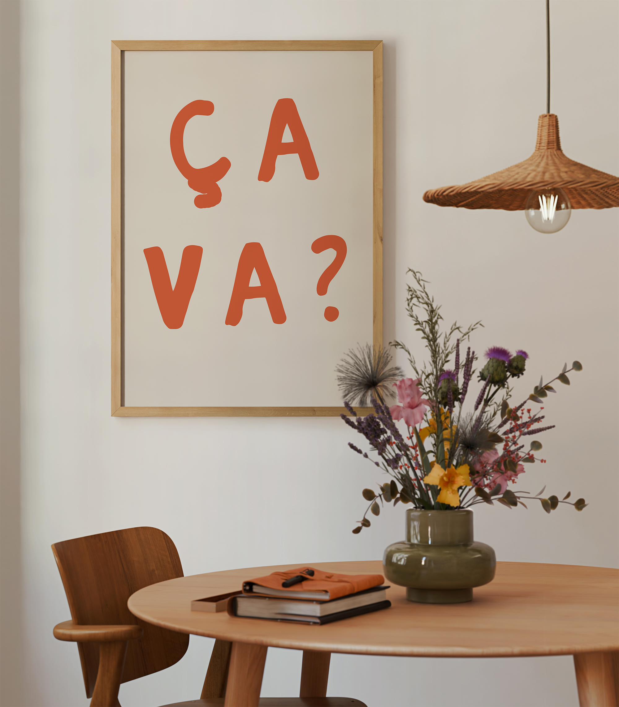 Ca Va – A French Print. Typography print with a red, handwritten quote on a beige background. Fun and minimalist as a statement for your walls.