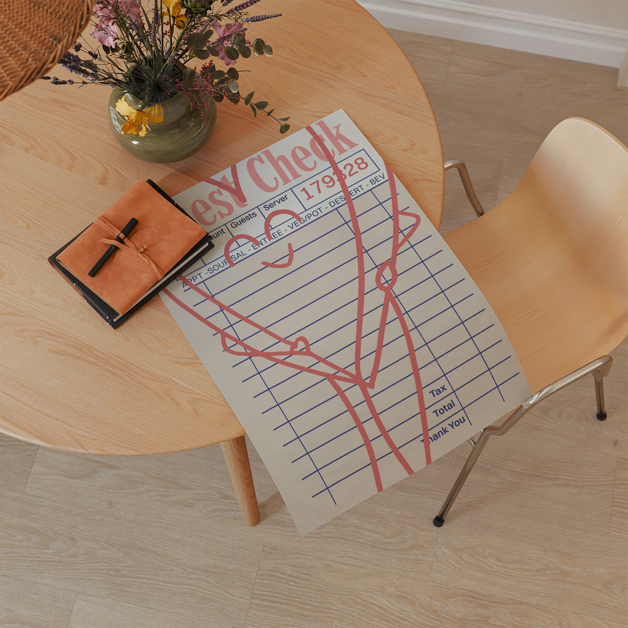 Guest Check Heart Wall Art Print Fun, trendy wall art featuring a classic guest check with a hand-drawn heart. The design mixes a nostalgic diner vibe with a modern, playful feel, making it an easy statement piece. Perfect for kitchens, coffee corners, or gallery walls, adding a cool, effortless touch to your space.